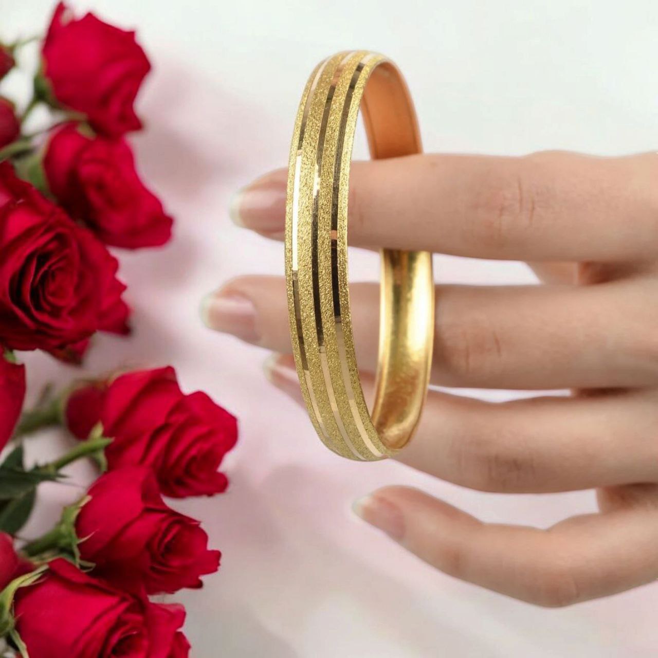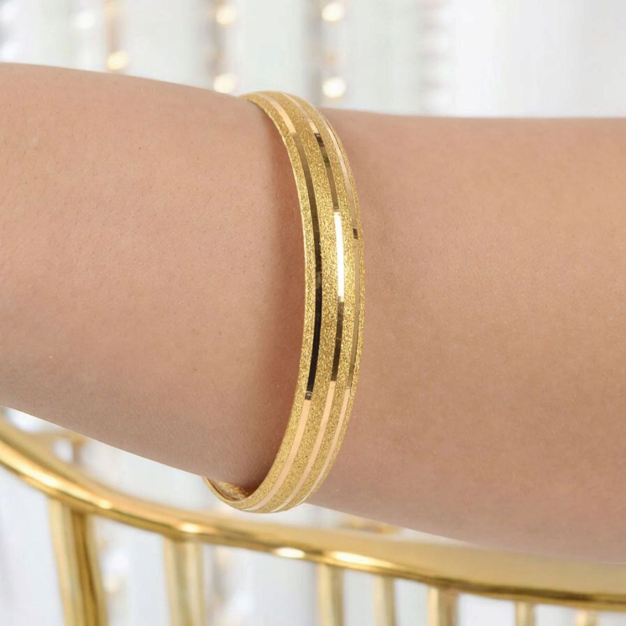 1 Cm Boydan Çizgili 22 Ayar Altın Kaplama Bilezik