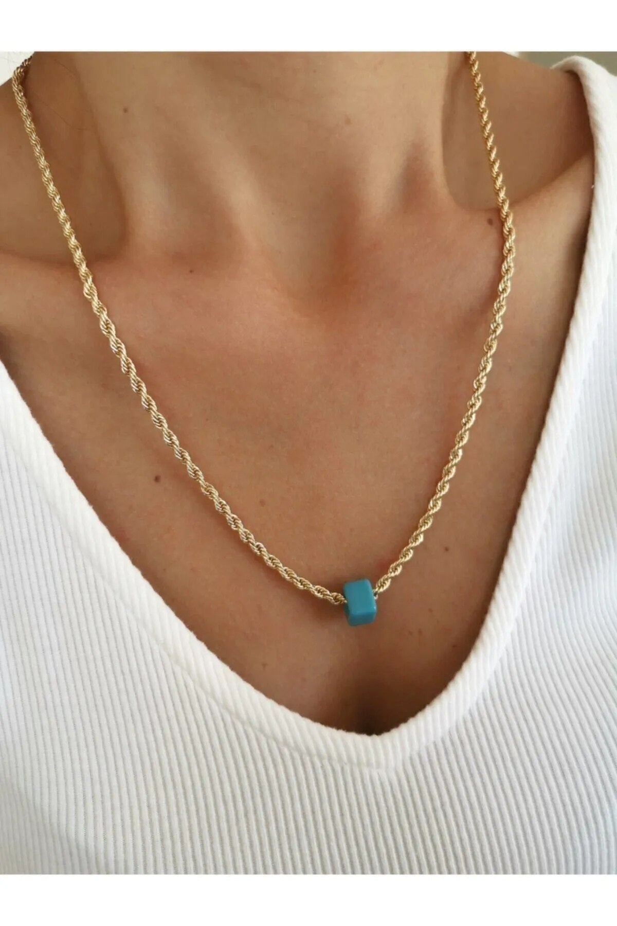 18 Ayar Nostaljik Boncuklu Burgu Kolye