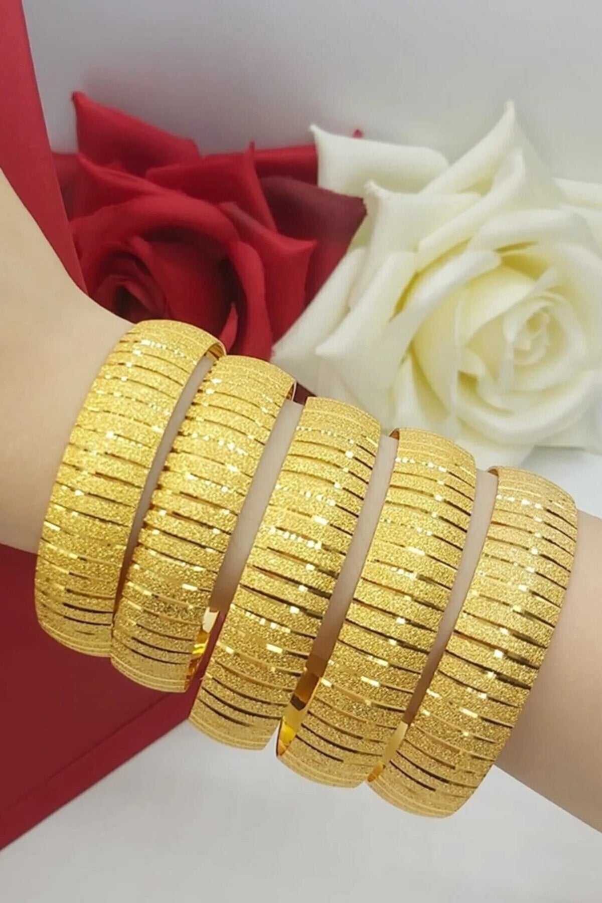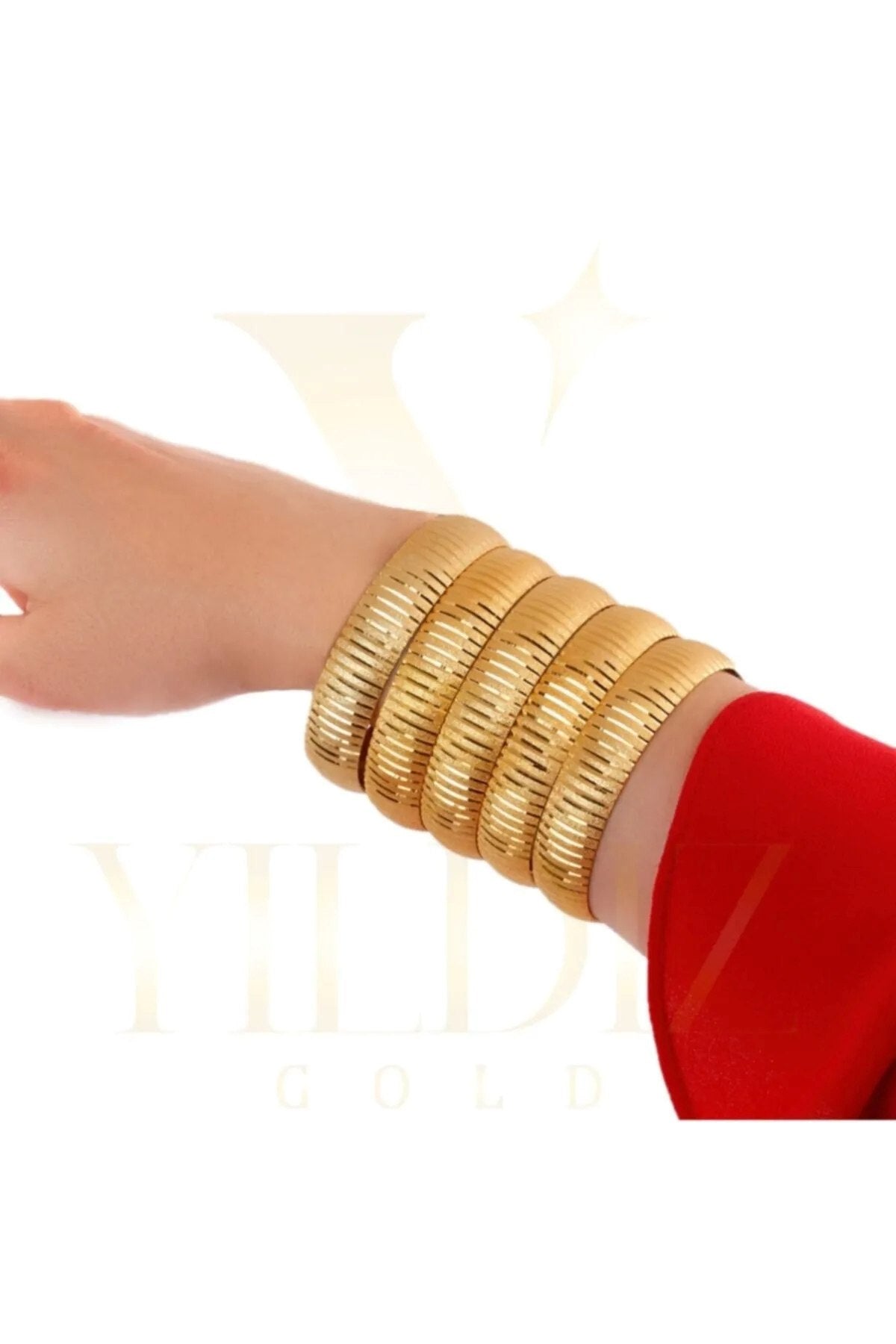 22 Ayar Altın Kaplama Düz Çizgi Bilezik Düğün Kına Özel Günler 1 Adet