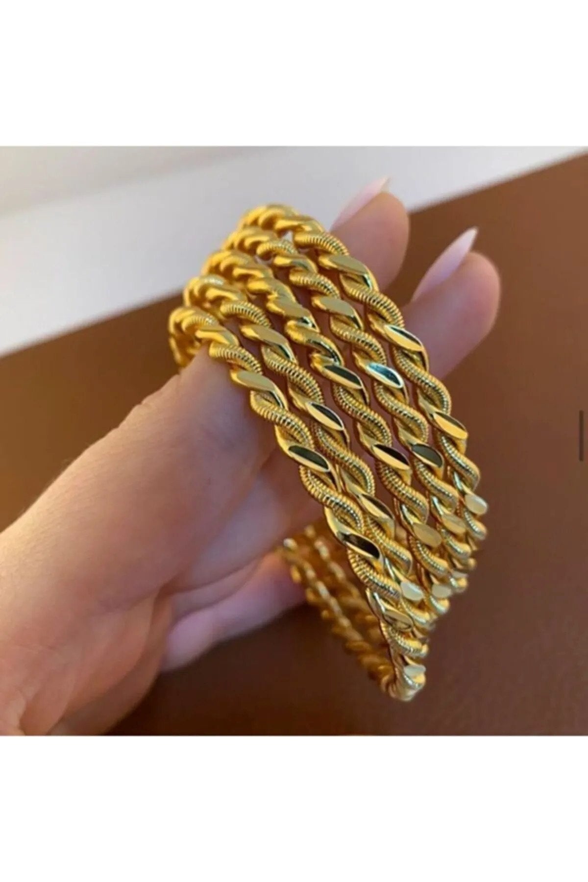 22 Ayar Altın Kaplama Kadın 2 Telli Burma Bilezik (1 Adet)
