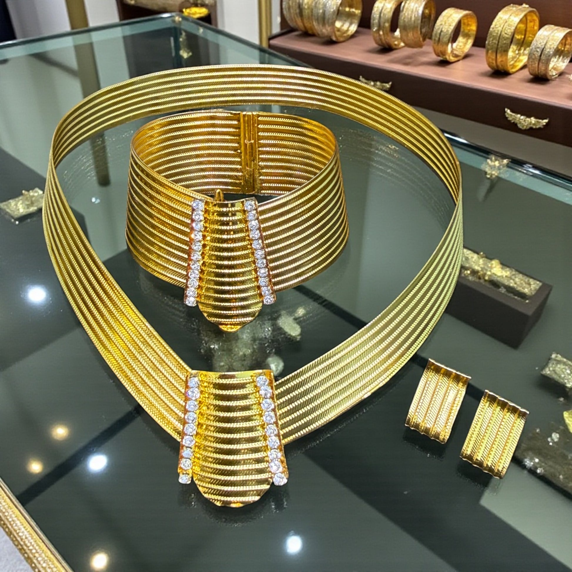 Trabzon Hasırı Set Kelepçe Bileklik Kolye Küpe Gerdanlık Set Takım