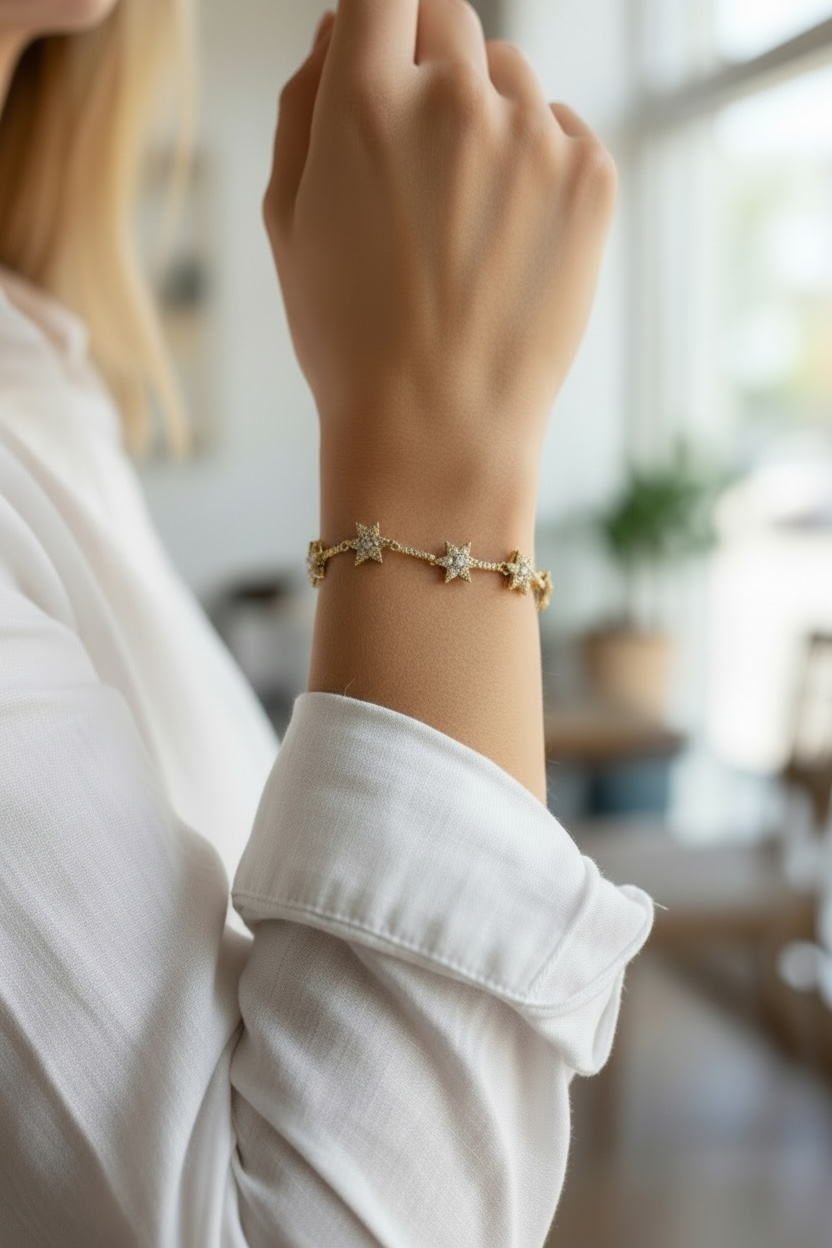 Xuping Yıldız Taşlı Çelik Bileklik Künye